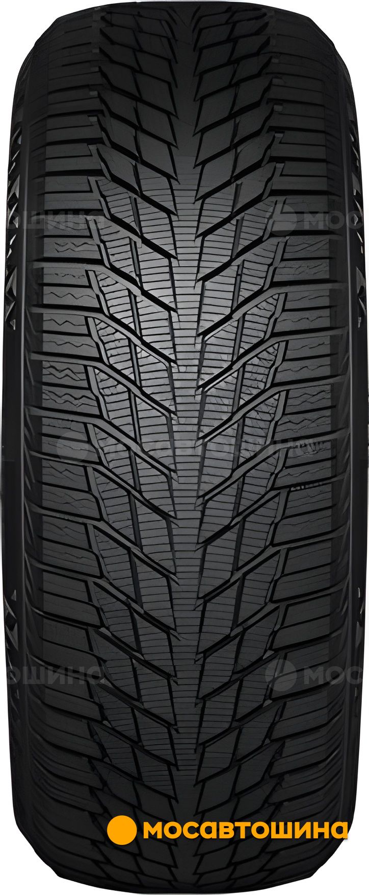 The tread of the model is made in the classic directional style with pronounced symmetry. Its blocks form a V-shaped pattern with open shoulder zones. This allows for quick handling of any amount of slush, mud, and water, keeping the contact area clean. In the center of the tread, there is a solid rib that is responsible for the response to steering wheel turns, making the vehicle more maneuverable. The block structures departing from it with a developed network of lamellas having a transverse arrangement form a large number of gripping edges. This affects the strength of fixing the contact patch on snowy and icy roads, increasing the level of driving safety.